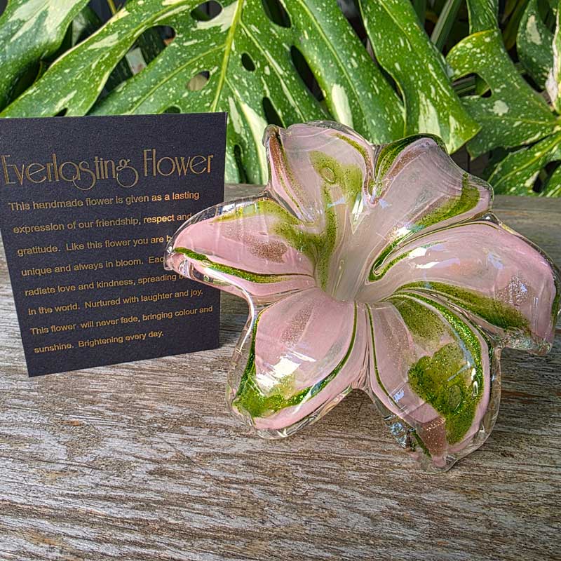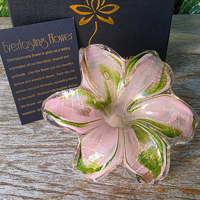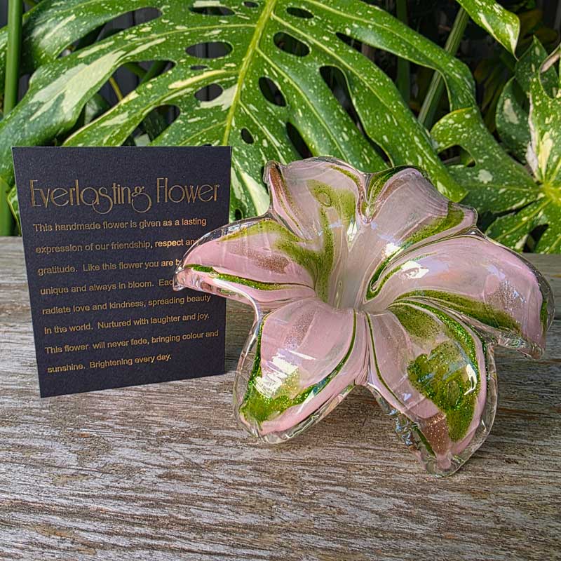 Glass Everlasting Flower - Soft Pink & Green
