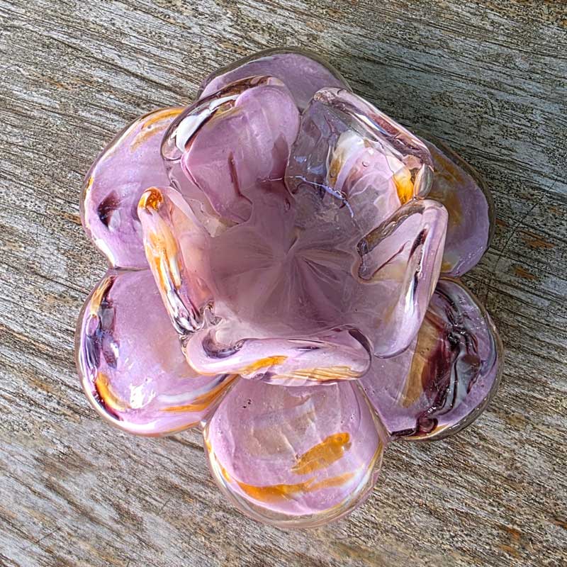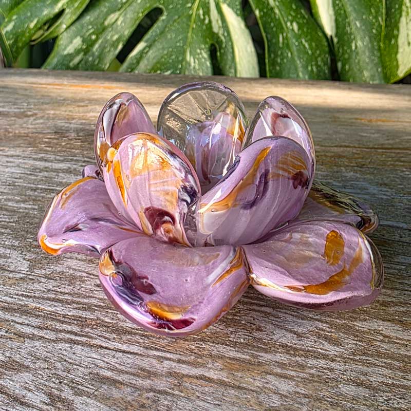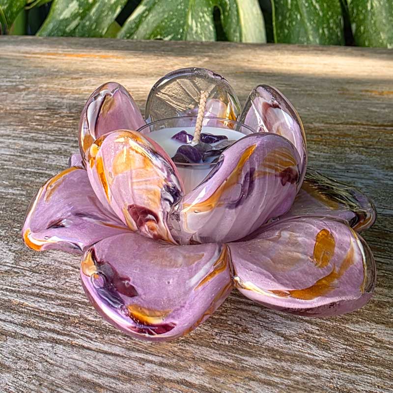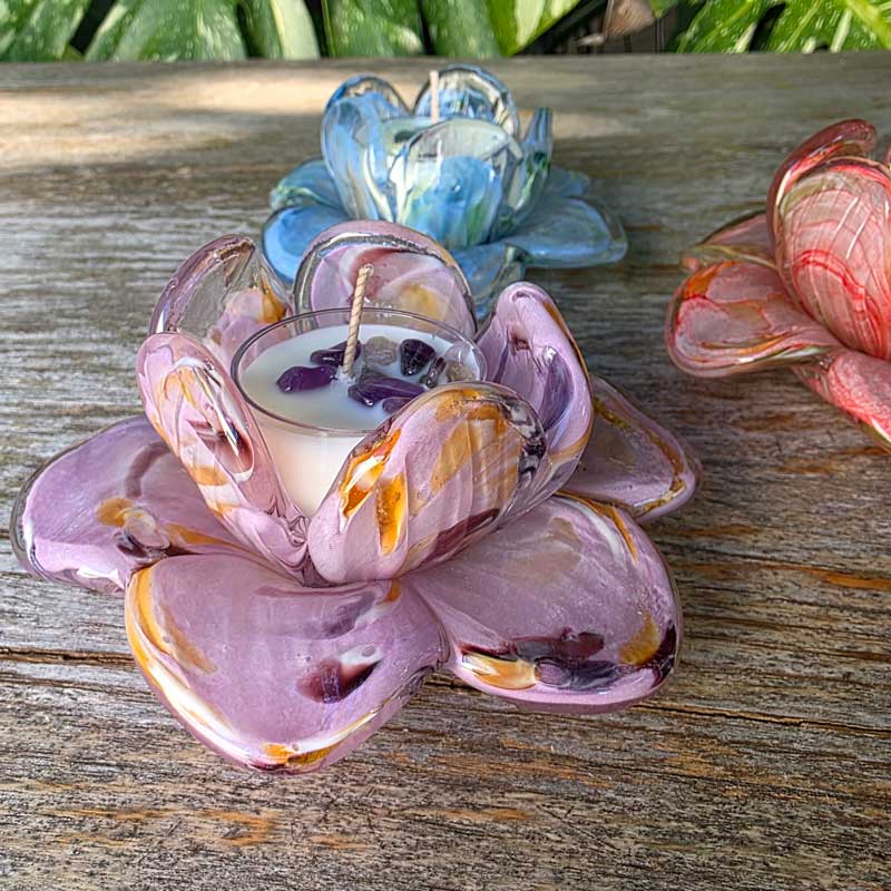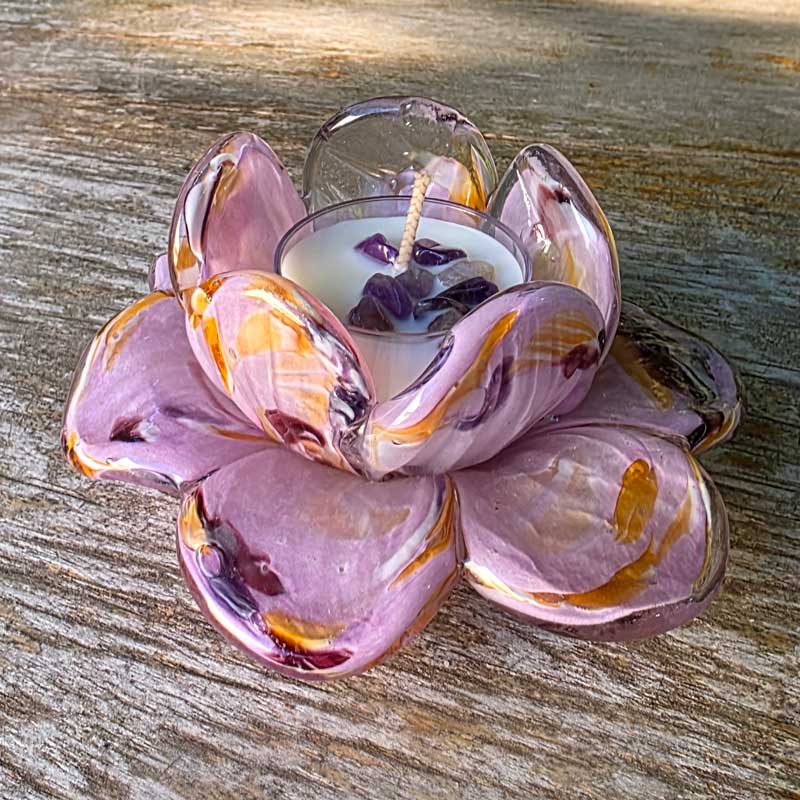 Glass Flower Tealight Candle Holder - Pink & Purple