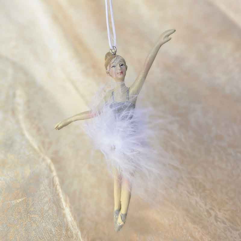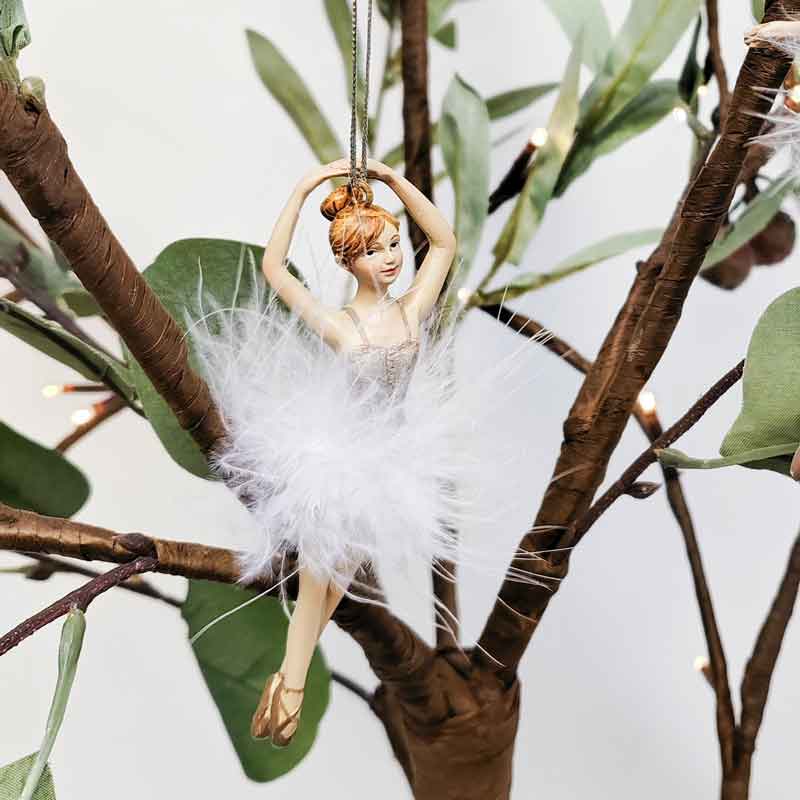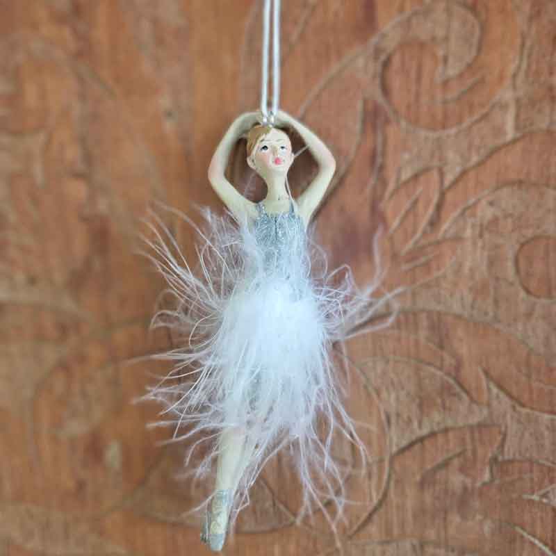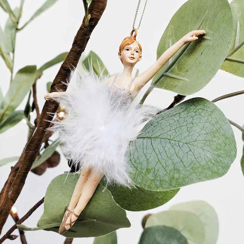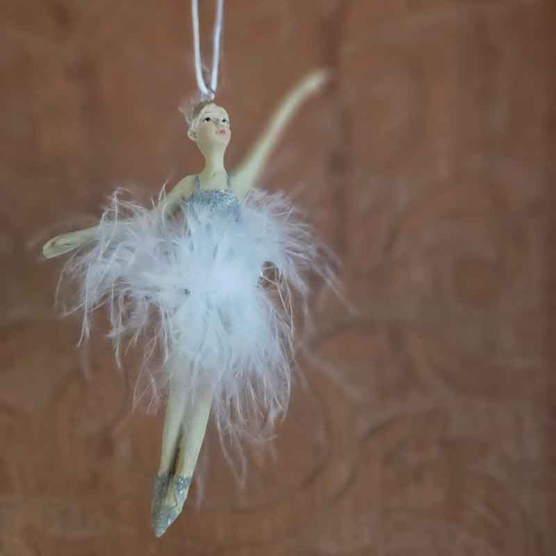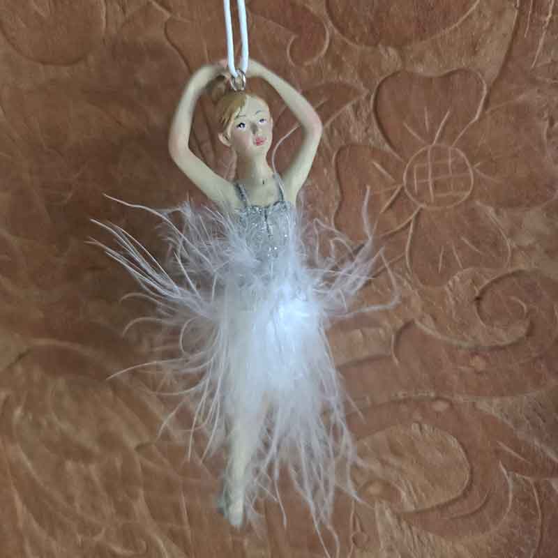 This pretty hanging white ballerina will add the perfect touch to your Christmas tree or can be used at anytime of year!. Hang it on a door or in a window or in a kids bedroom.