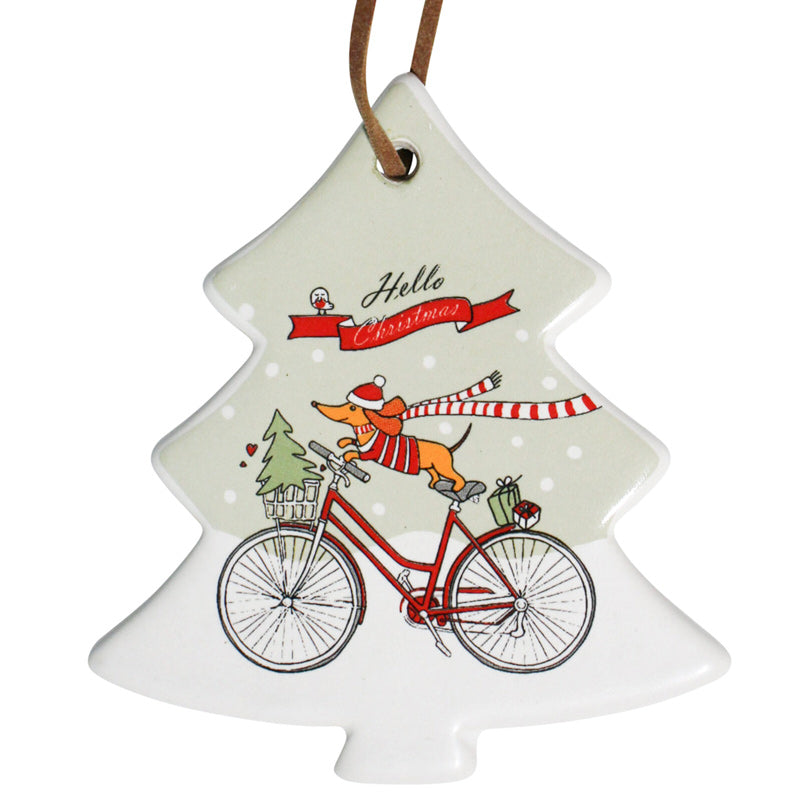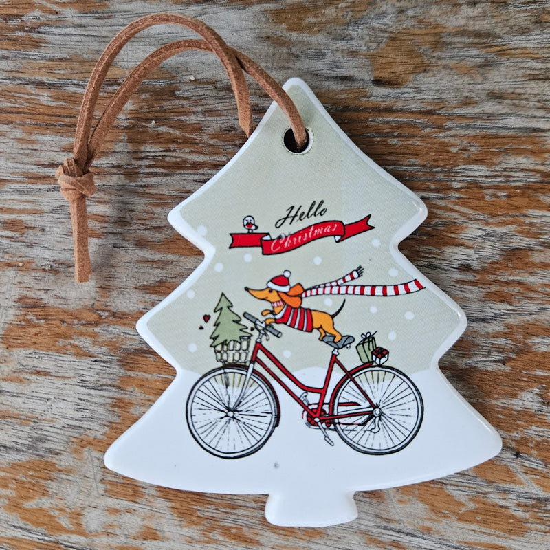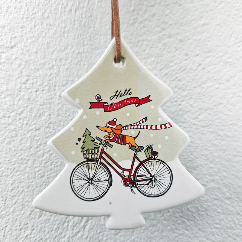 Hello Christmas Hanging Tree Ornament - Dachshund