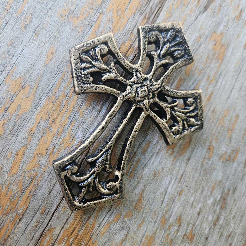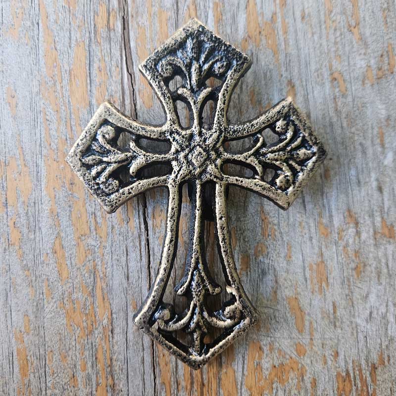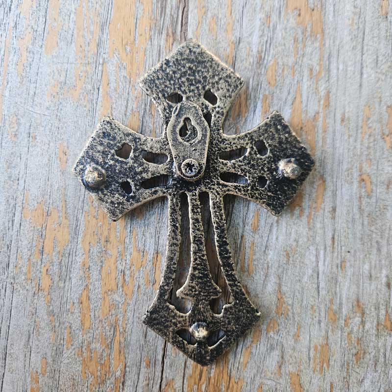 This stylish hanging metal cross will add a lovely touch to any room in your home.