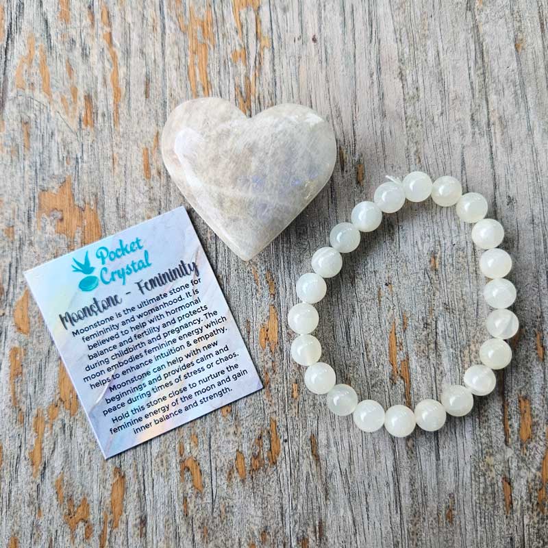 Moonstone Pocket Crystal Heart - Femininity