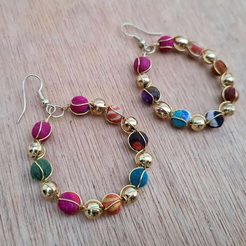 Cleverly made using recycled fabrics, these boho inspired earrings are the perfect gift idea for someone special.