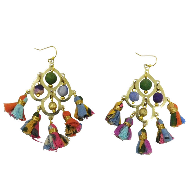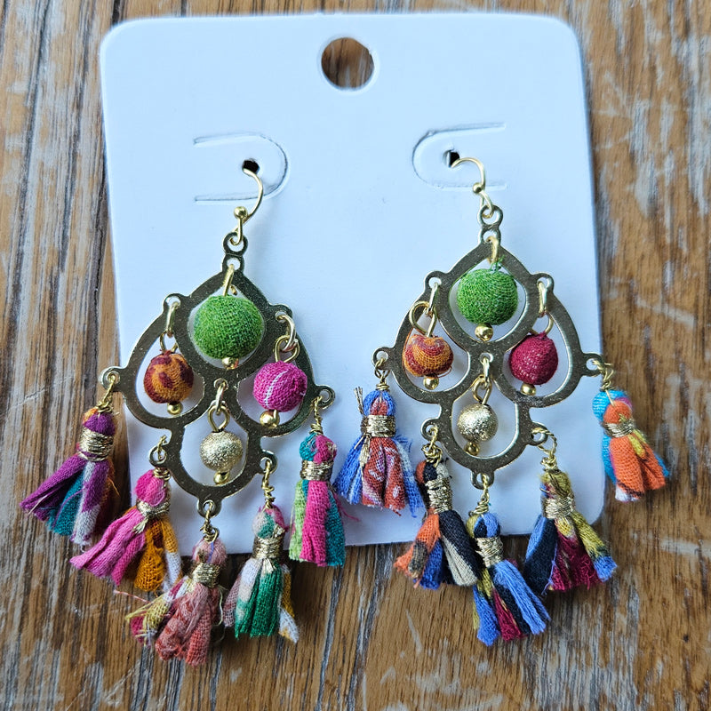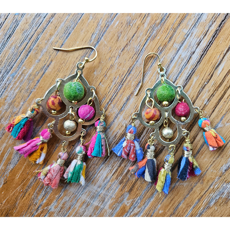 Recycled Fabric Tassel Handcrafted Earrings