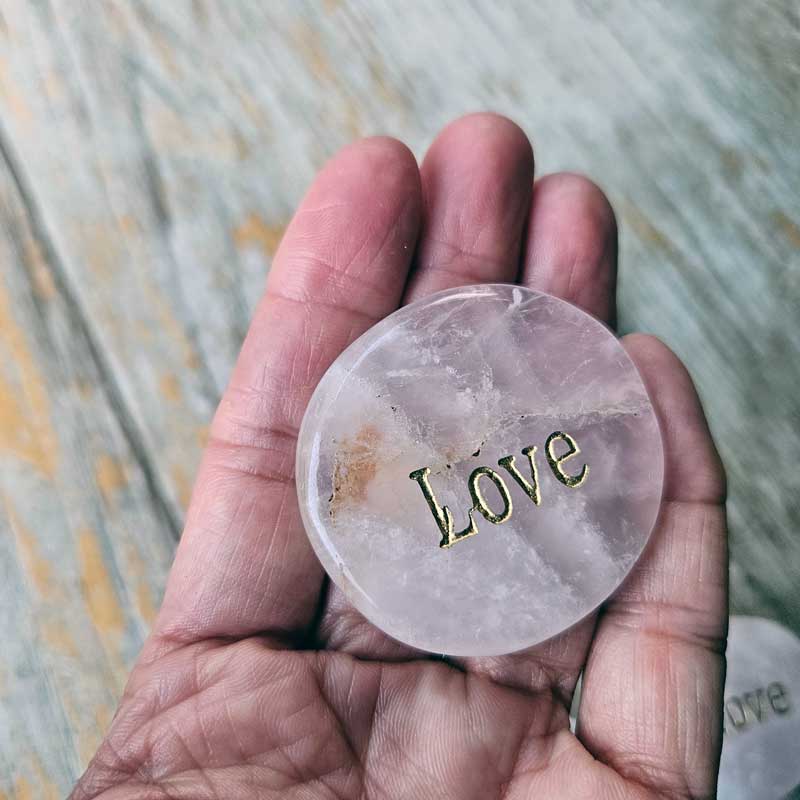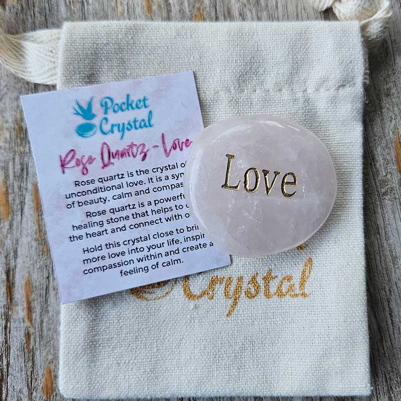 This beautiful Rose Quartz Pocket Crystal Palm Stone has been designed to be the ultimate pocket-sized meaningful gift for someone special. Etched with the word "LOVE" in gold, signifying the meaning of Rose Quartz.