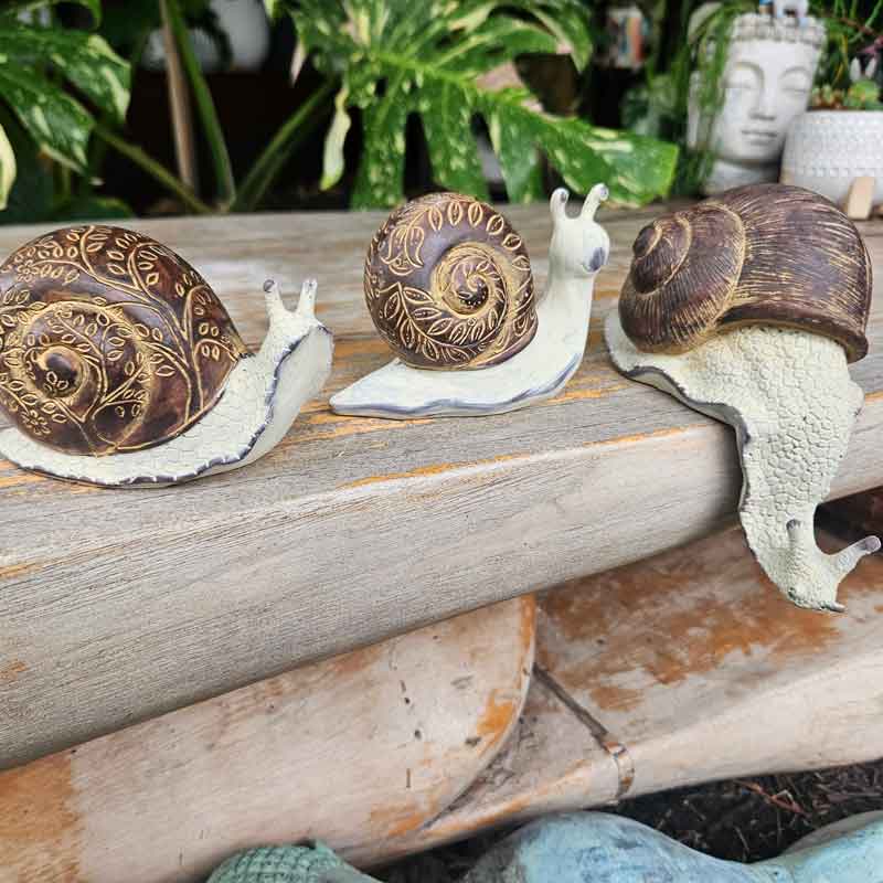 A cute little snail figurine that would make a great little gift or a cute decorative item that would sit perfectly on a desk in the study or bookshelf