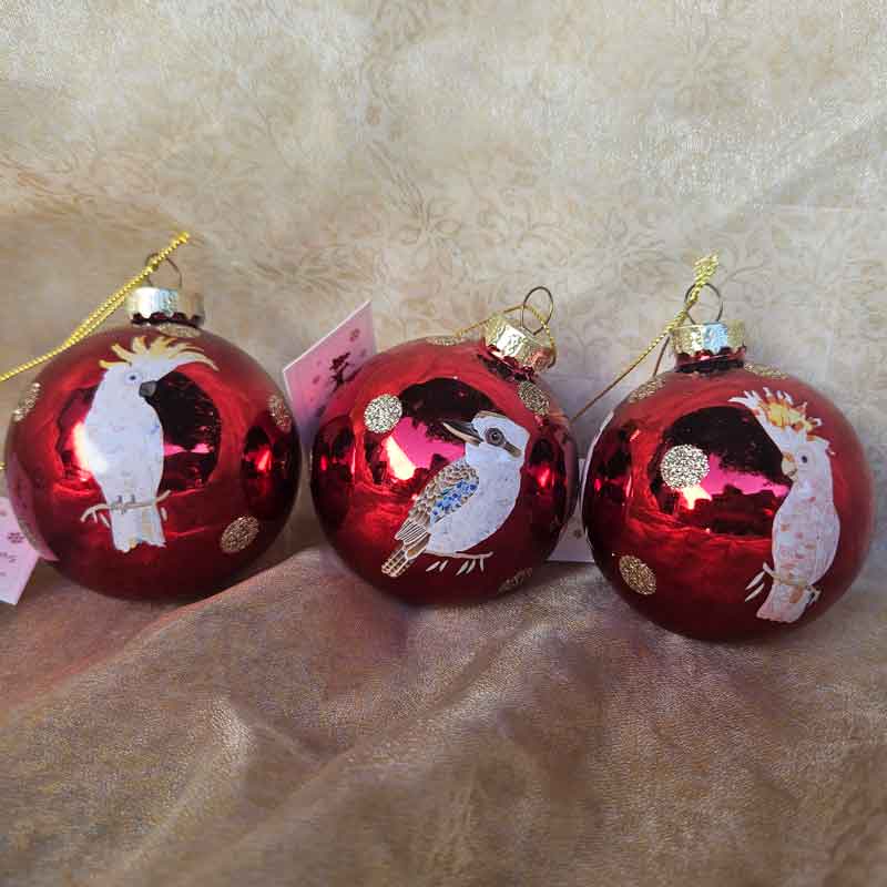 Aussie Birds Christmas Bauble By Frankie B - Red