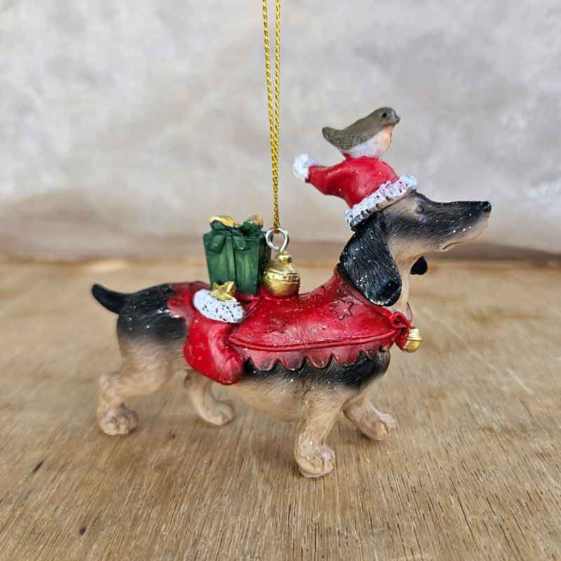 Festive Dachshund Dog Hanging Ornament - Bird On Head