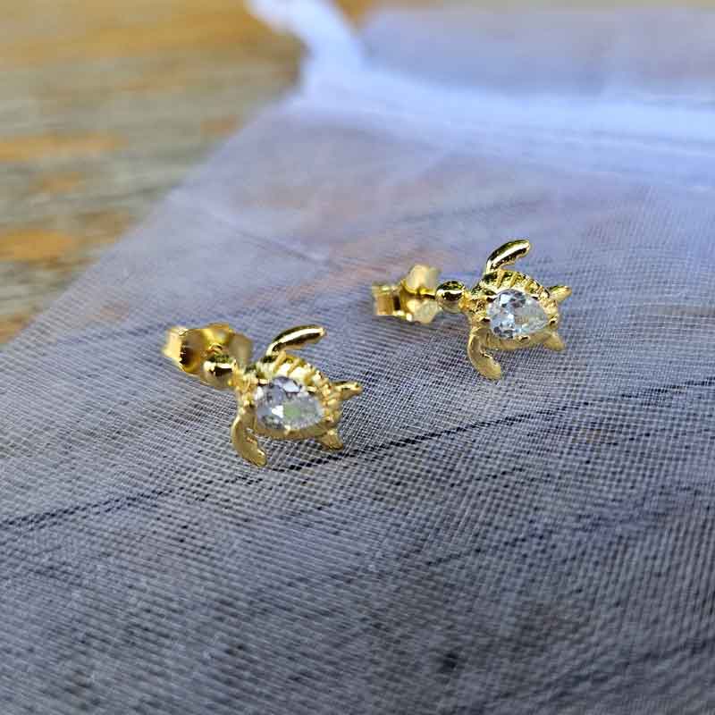 Sparkling Turtle Earrings 925 Sterling Silver - Gold Plated