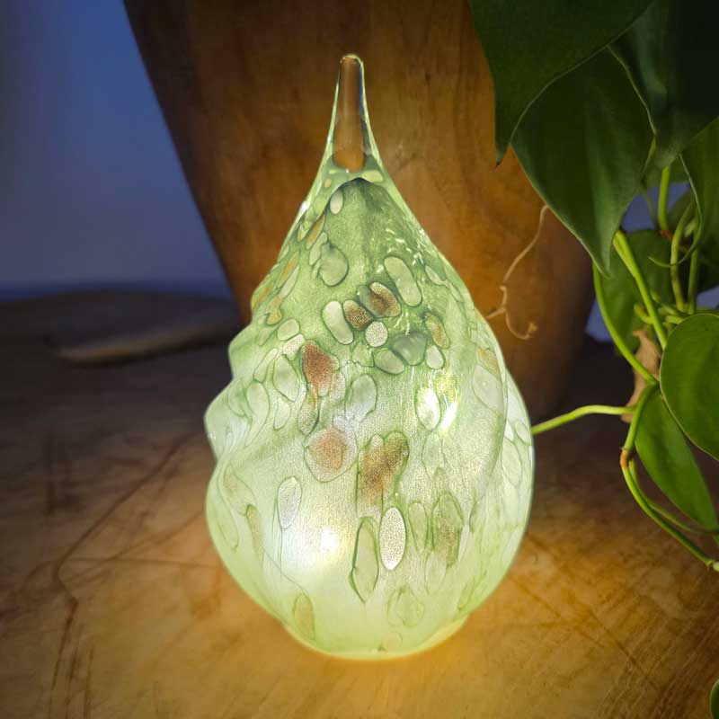 These beautiful hand made glow lights have been crafted from blown glass by skilled artisans. Contains a string of LED lights inside. Stunningly beautiful, solid and as they are hand made, each one is unique.