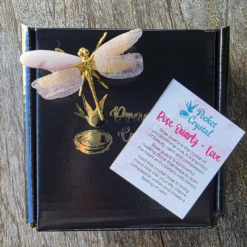 Dragonfly Crystal - Rose Quartz Love (Gold)