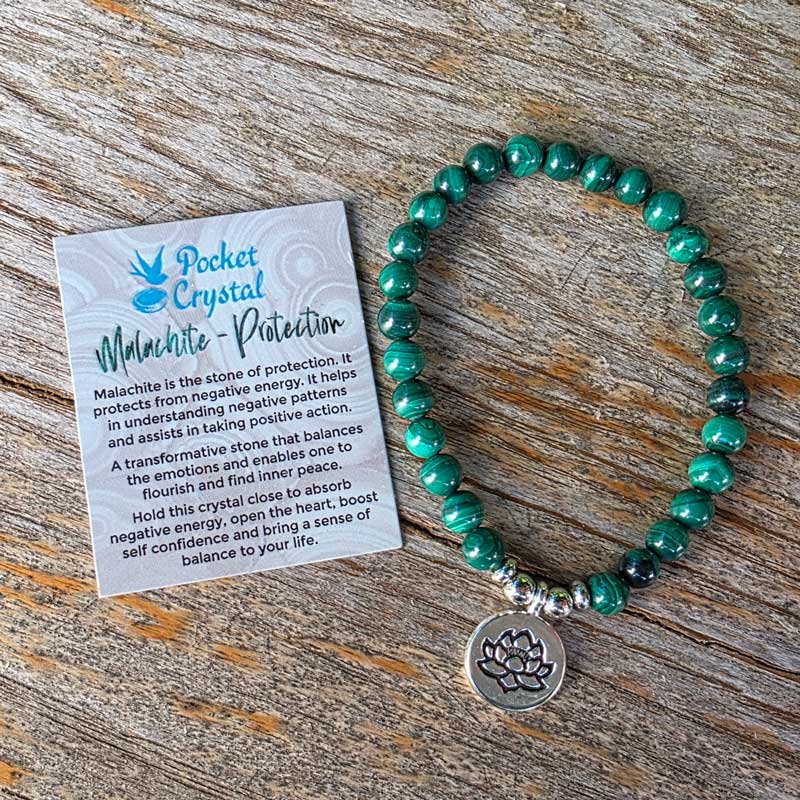 Malachite is the stone of protection. It protects from negative energy. It helps in understanding negative patterns and assists in taking positive action. A transformative stone that balances the emotions and enables one to flourish and find inner peace. Hold this crystal close to absorb negative energy, open the heart, boost self confidence and bring a sense of balance to your life.
