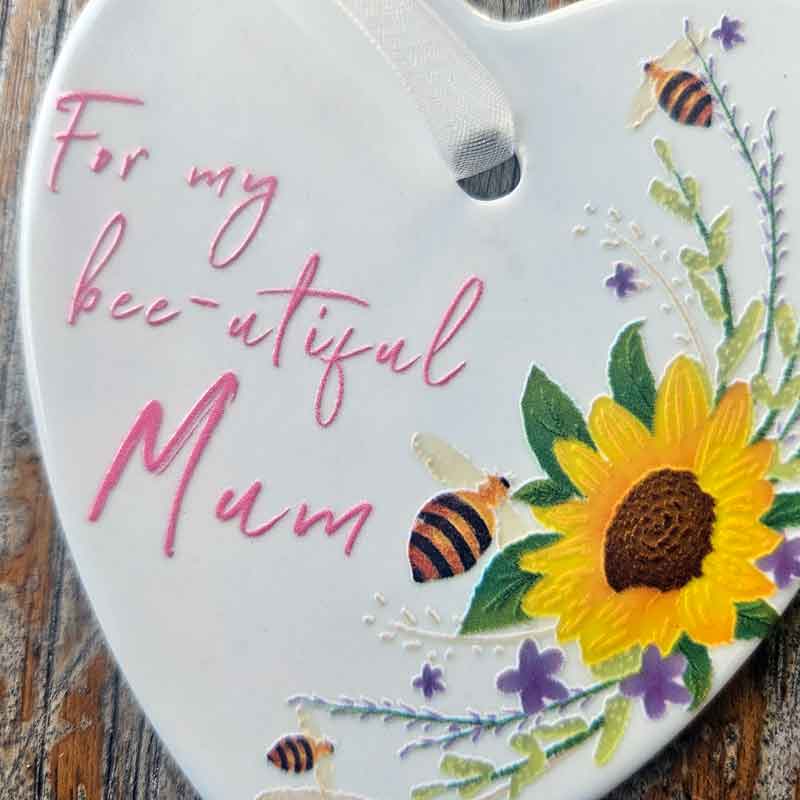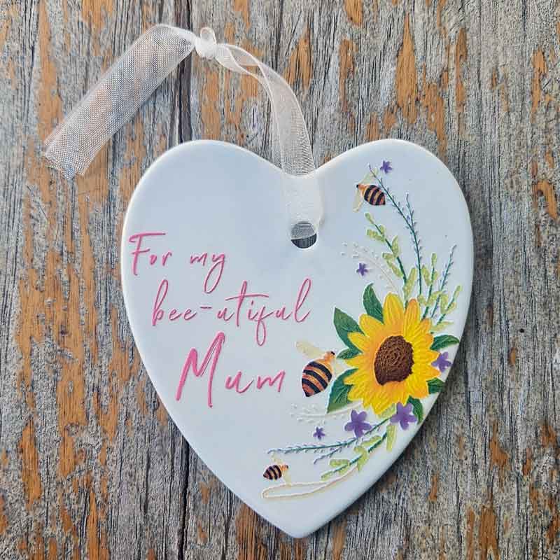 A cute hanging heart bee ornament that makes the perfect little gift idea for your mum.