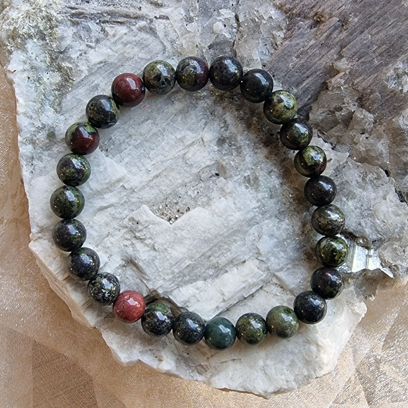 A beautiful bracelet featuring blood stone crystal stones. There is nothing like wearing natural stone and these bracelets work perfectly on their own, or layered into beautiful stacks to create a more dramatic look.