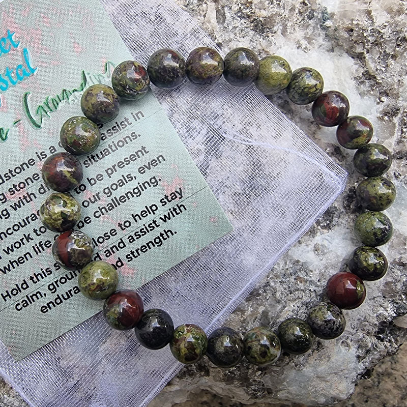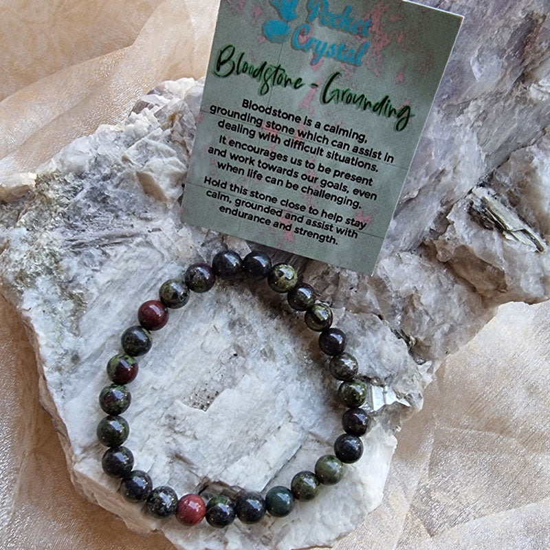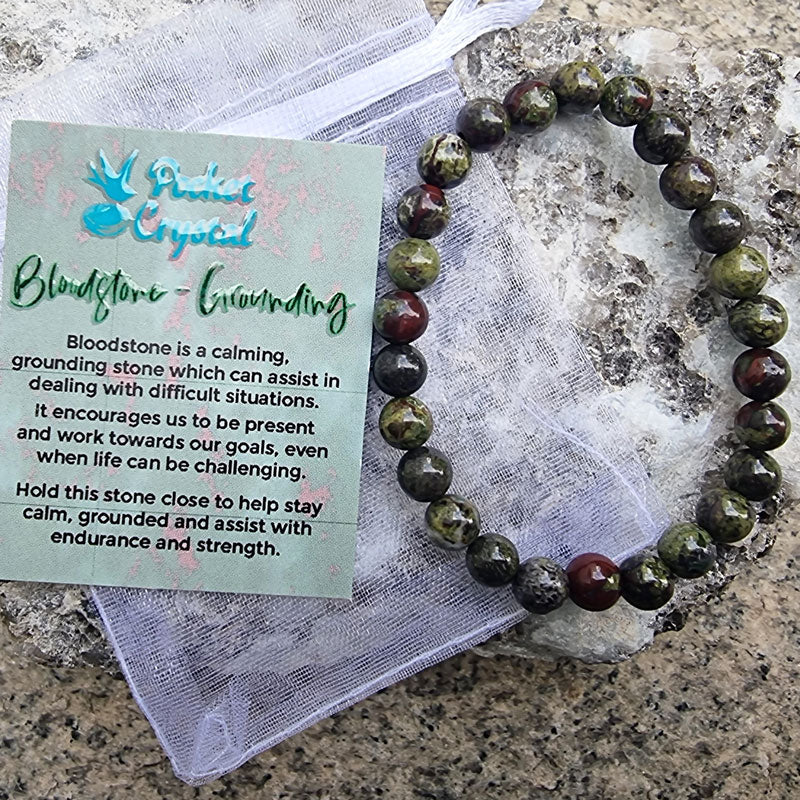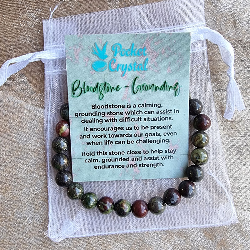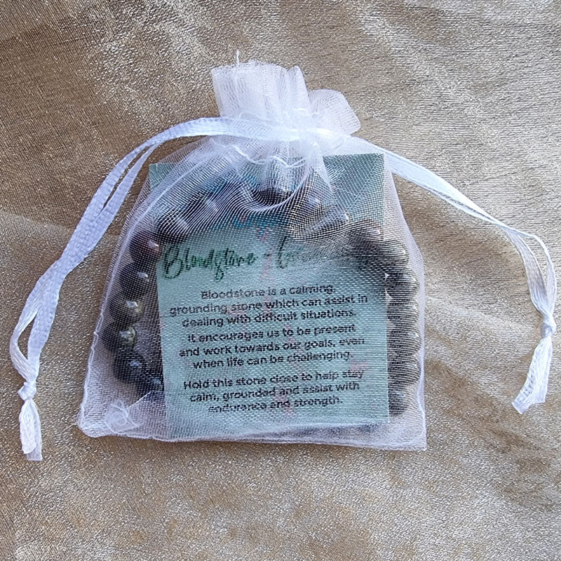 Bloodstone is a calming, grounding stone which can assist in dealing with difficult situations. It encourages us to be present and work towards our goals, even when life can be challenging. Hold this stone close to help stay calm, grounded and assist with endurance and strength.