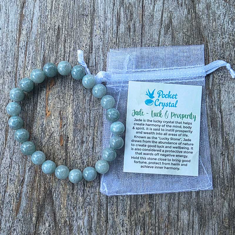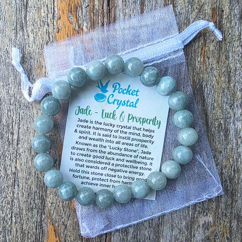 Jade is the lucky crystal that helps create harmony of the mind. body and spirit. It is said to instill prosperity into all areas of life. Known as the "Lucky Stone", Jade draws from the abundance of nature to create good luck and wellbeing. It is also considered a protective stone that wards off negative energy. Keep this stone close to bring good fortune, protect from harm and achieve inner harmony.