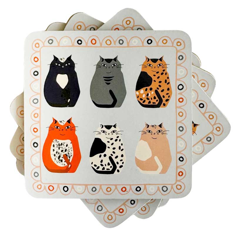 Protect table and desk top surfaces with this gorgeous coaster set in a sweet cat design. A must for cat people!