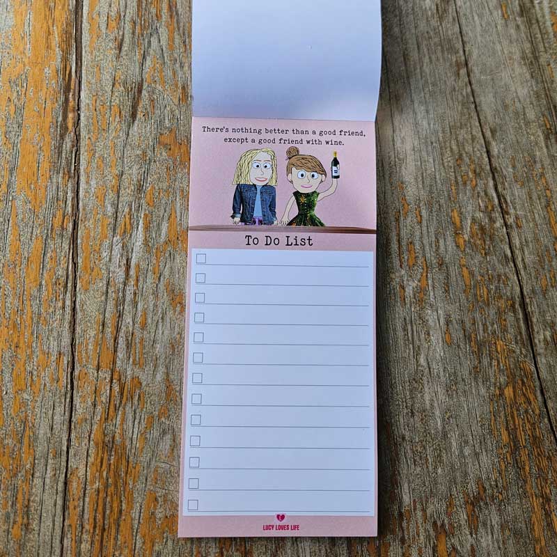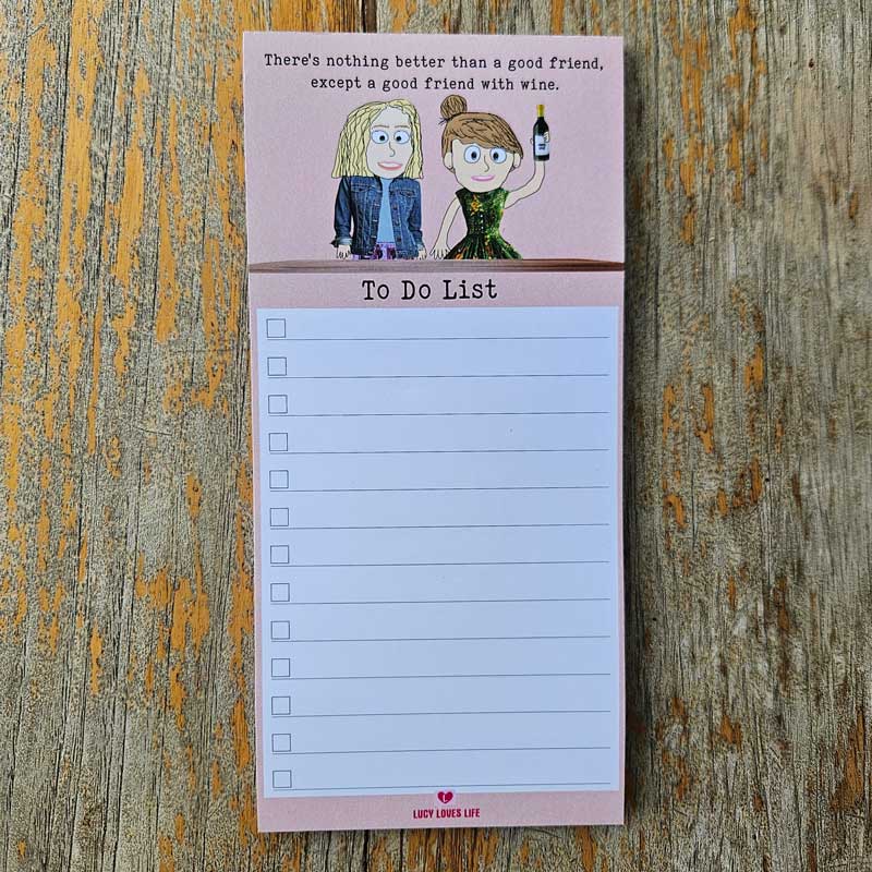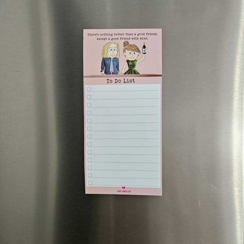 Lucy Loves Life Magnetic Notepad Jotter - Good Friends Bring Wine