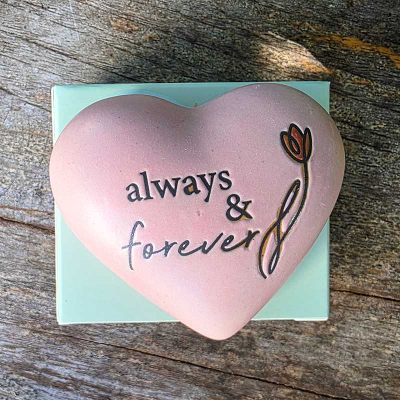 A beautiful gift boxed heart ornament featuring the words "Always & Forever". The perfect little gift idea!