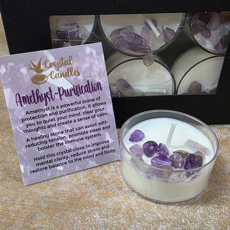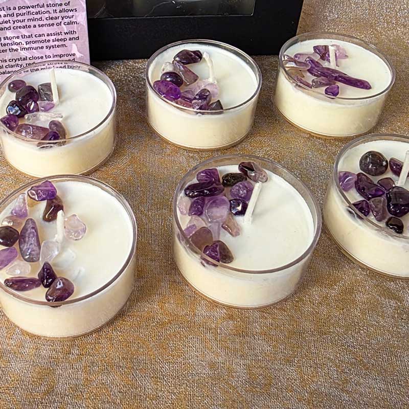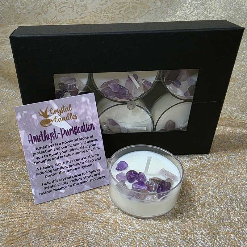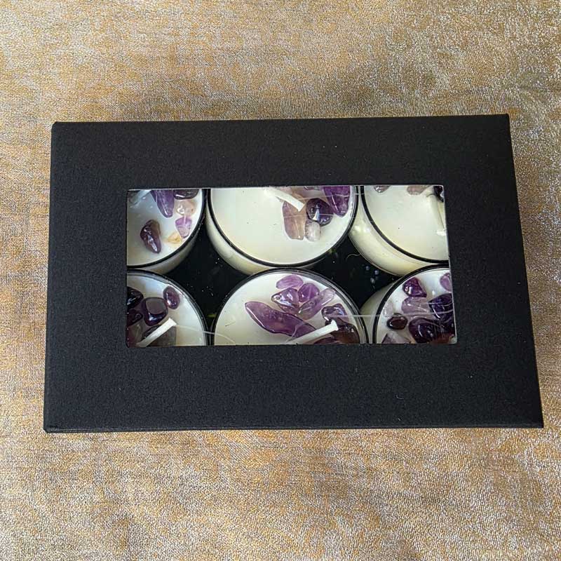 Amethyst Crystal Soy Tealight Candles Set of 6 - Sandalwood