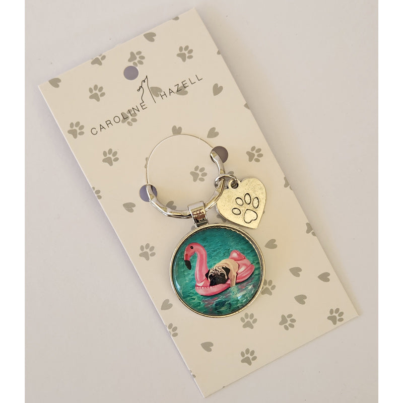 This is the perfect treat for yourself or your dog loving friends! A cute crystal keyring with a silver pawprint charm. Comes on a gift card. Features a beautiful pug beach dog design.