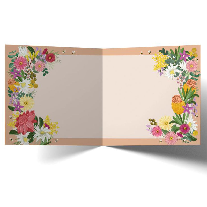A 14 x 14cm greeting card with illustrations both inside and out. Made in Australia.