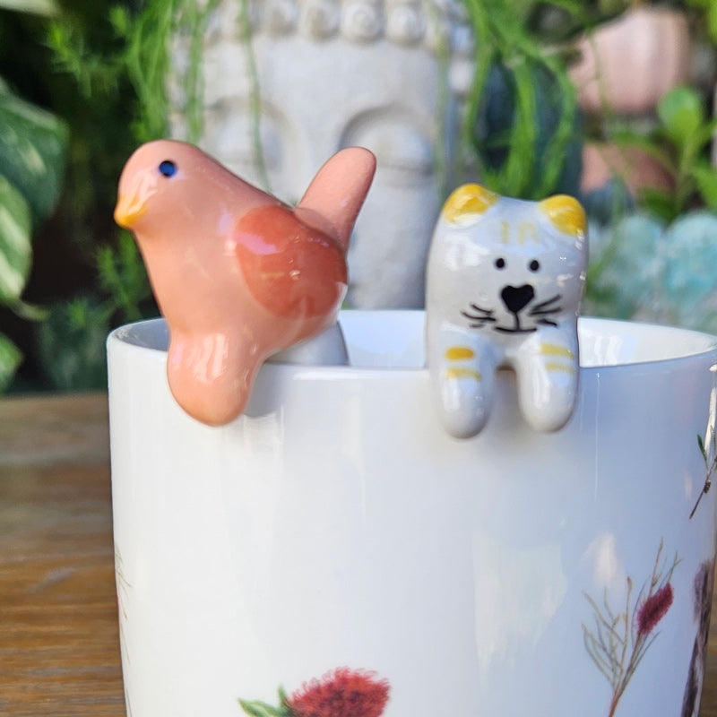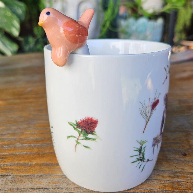 This cute bird teaspoon is the perfect little gift for any bird lover or as a treat for yourself. A small teaspoon that can sit at the top of a tall mug or glass. The cute design allows the bird to hang over the edge of the mug or glass preventing the spoon from slipping into the drink.