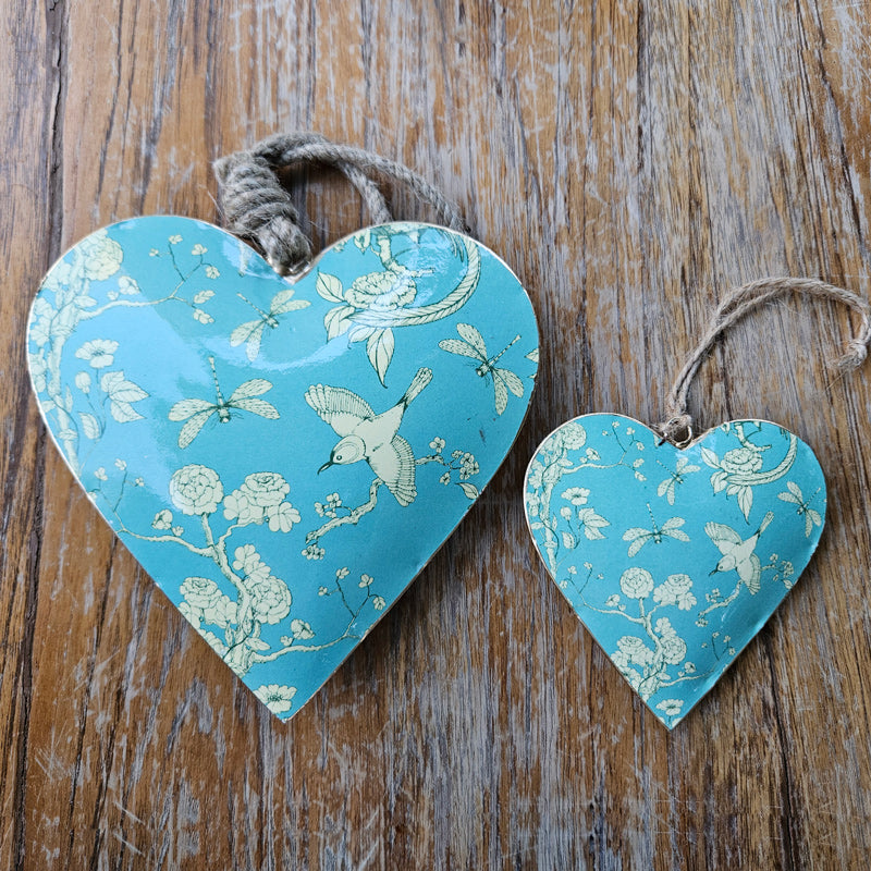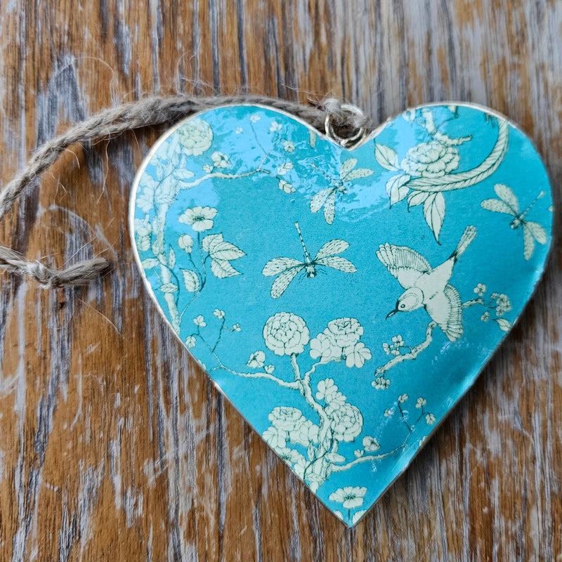 A lovely vintage style hanging heart ornament in a pretty dragonfly floral design!