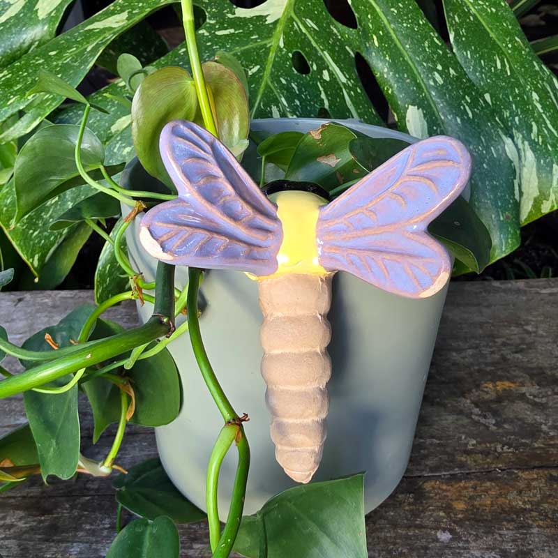 A cute dragonfly pot hanger that sits at the top of your pot. Adds a decorative touch to liven up your potted plants. Cute and quirky and the perfect little gift for any plant person or anyone that loves dragonflies.