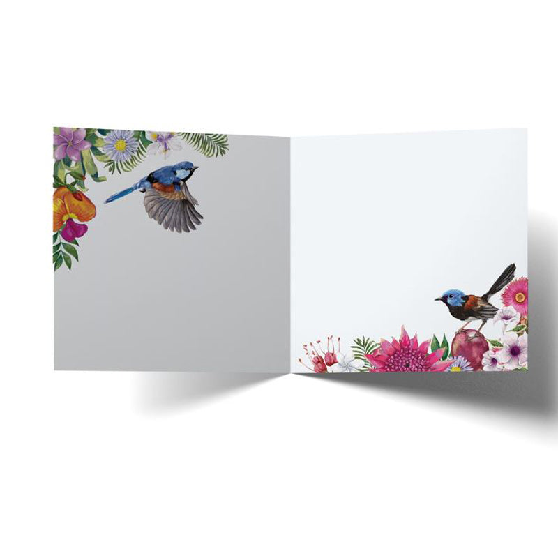 A 14 x 14cm greeting card with illustrations both inside and out. Made in Australia.