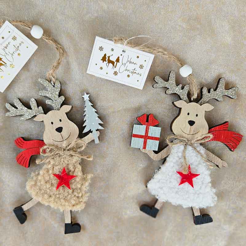 A super cute fluffy hanging reindeer ornament that will add a cute and quirky touch to your Christmas tree!