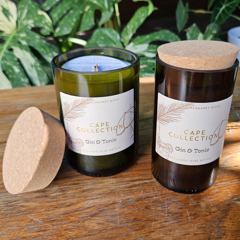 Love gin & tonics? Or looking for a gift for a gin loving friend or family member? This fresh and zingy smelling pure soy wax candle has been lovingly crafted in Margaret River, WA and hand poured into a recycled champagne bottle (to help the planet by using recycled local materials). The aroma from this candle is simply divine - perfect for anyone that loves cocktails, candles, coffee or gin! Once you open the lid and take a sniff, you may want to keep it for yourself! Experience the allure of this gin and tonic candle which fills the air with an effervescent fragrance that captures the zingy essence of gin, fizzy tonic and a deep juniper twist.