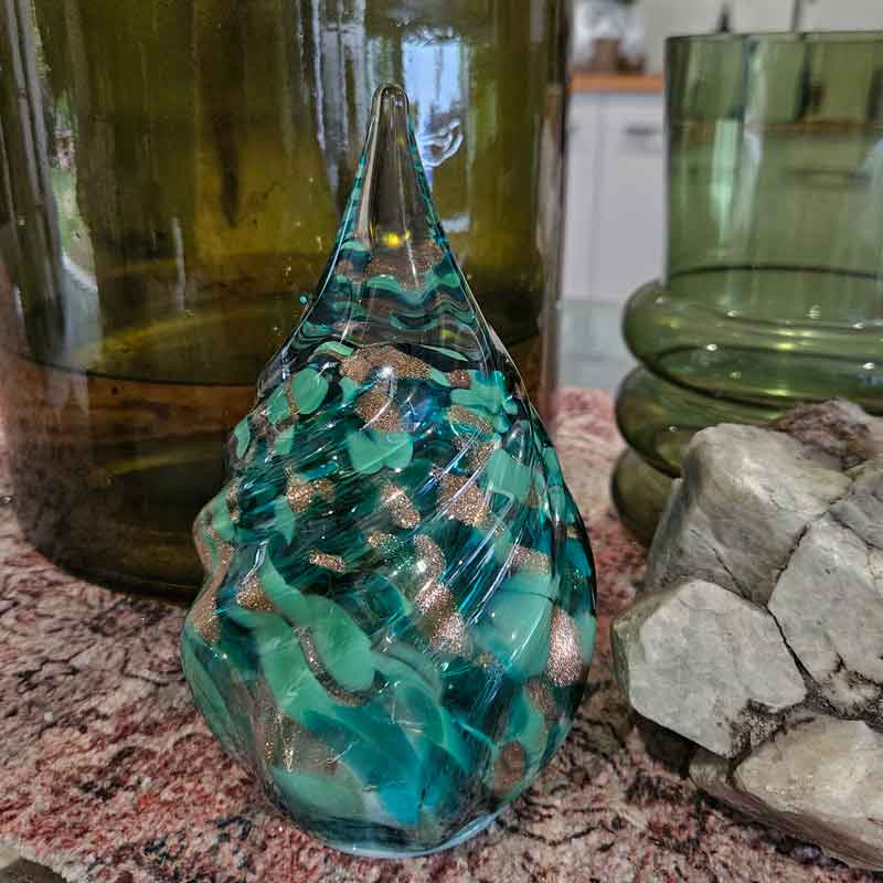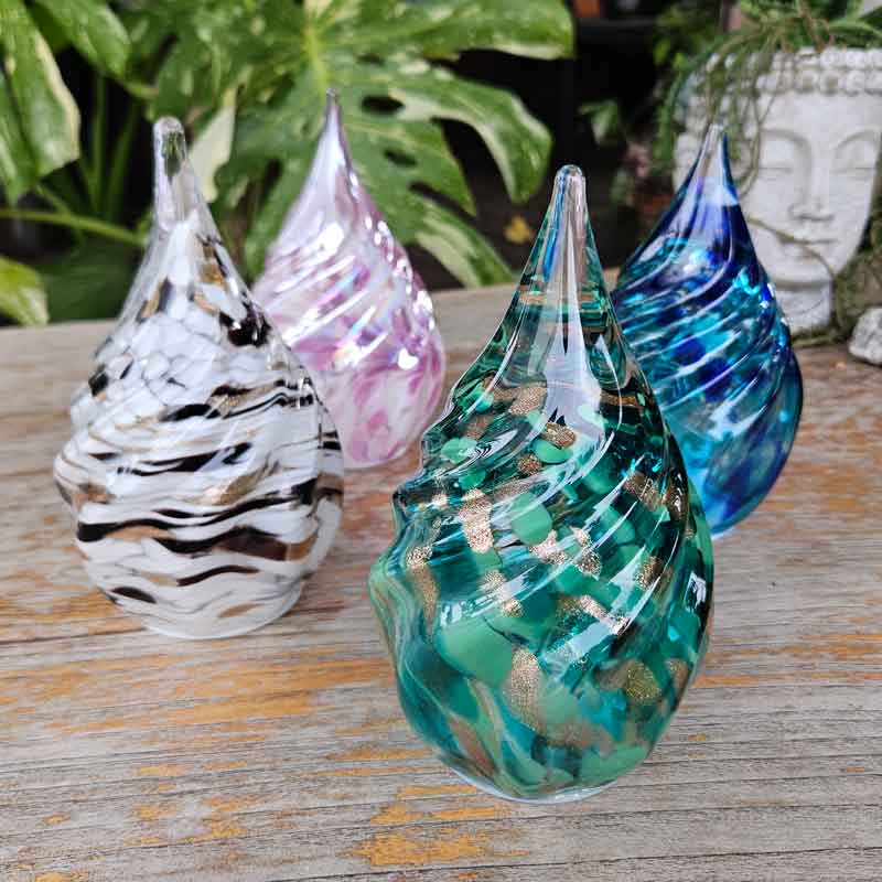 - Hand made with mouth blown glass