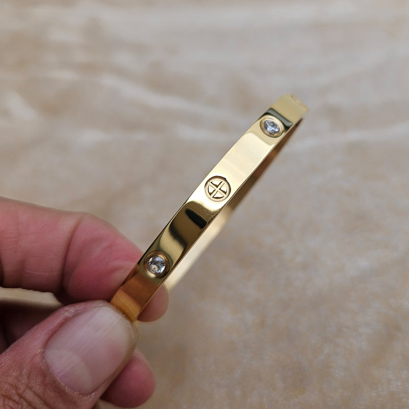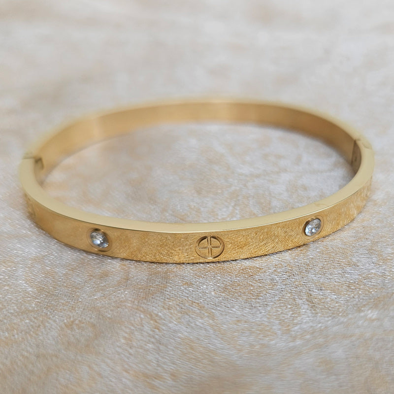 A beautiful bracelet in solid, durable stainless steel, gold plated.
