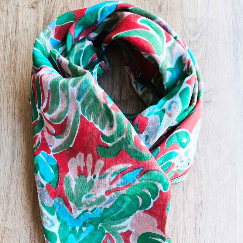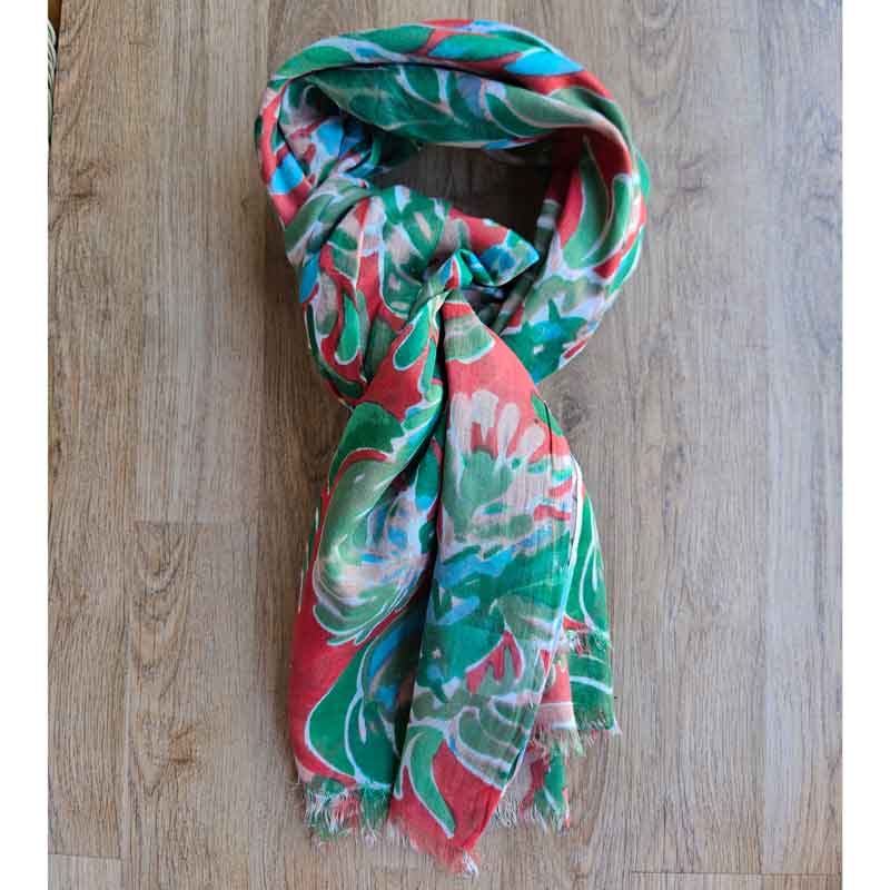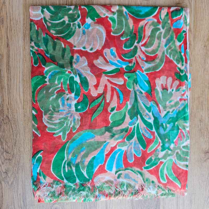 Green & Red Floral Cotton Scarf