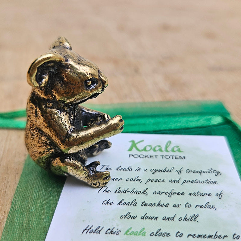 This beautiful Koala Pocket Totem has been designed to be the ultimate pocket-sized keepsake for someone special. Each Pocket Totem includes a soild brass ornament and a heartfelt message card within a matching bag. Each statue has been crafted in brass with fine detail.