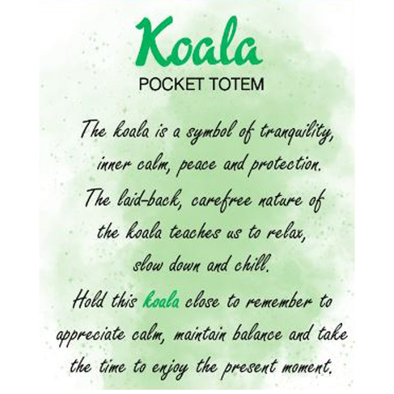 "The koala is a symbol of tranquility, inner calm, peace and protection. The laid-back, carefree nature of the koala teaches us to relax, slow down and chill. Hold this koala close to remember to appreciate calm, maintain balance and take the time to enjoy the present moment. "