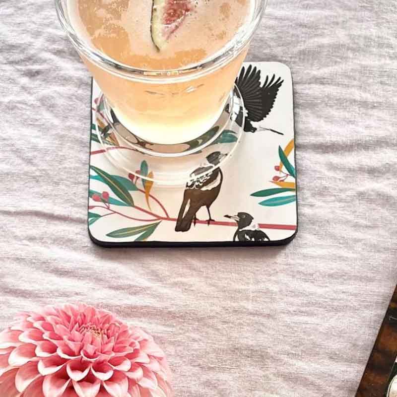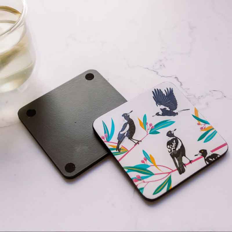 This beautiful coaster set is a must for magpie fans! The perfect gift idea for anyone that loves Australian birds, for overseas family and friends or visitors to Australia. Also great for Collingwood supporters!