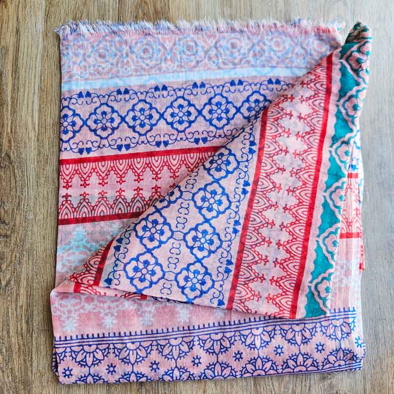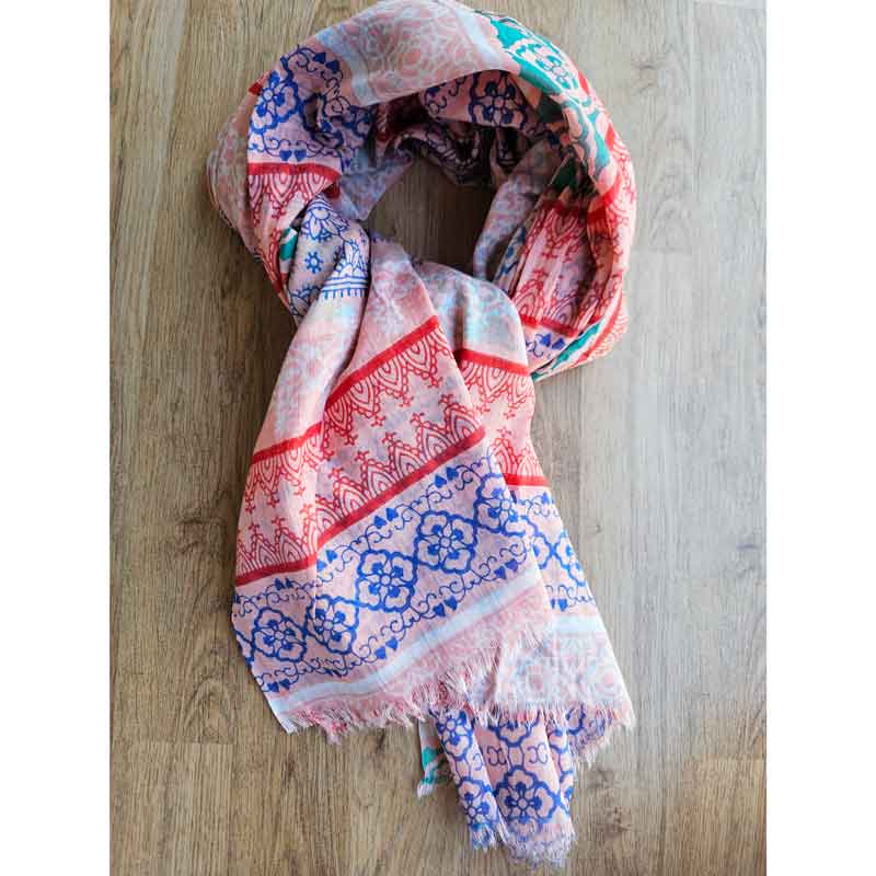 A very pretty 100% cotton scarf in a beautiful patterned mulitcolour design.