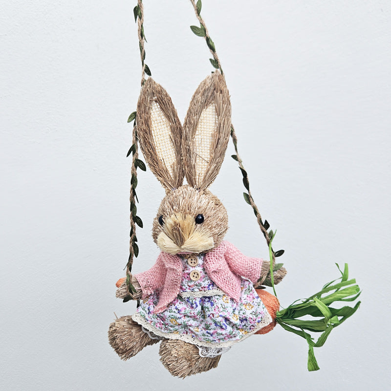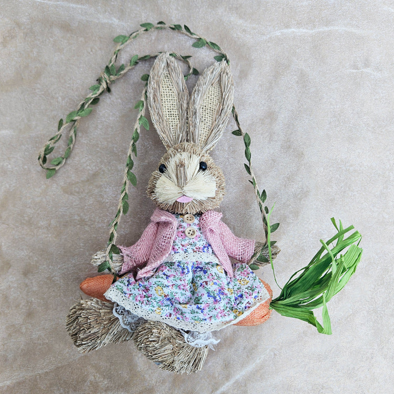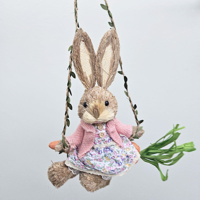 Prue Straw Rabbit On Carrot Swing