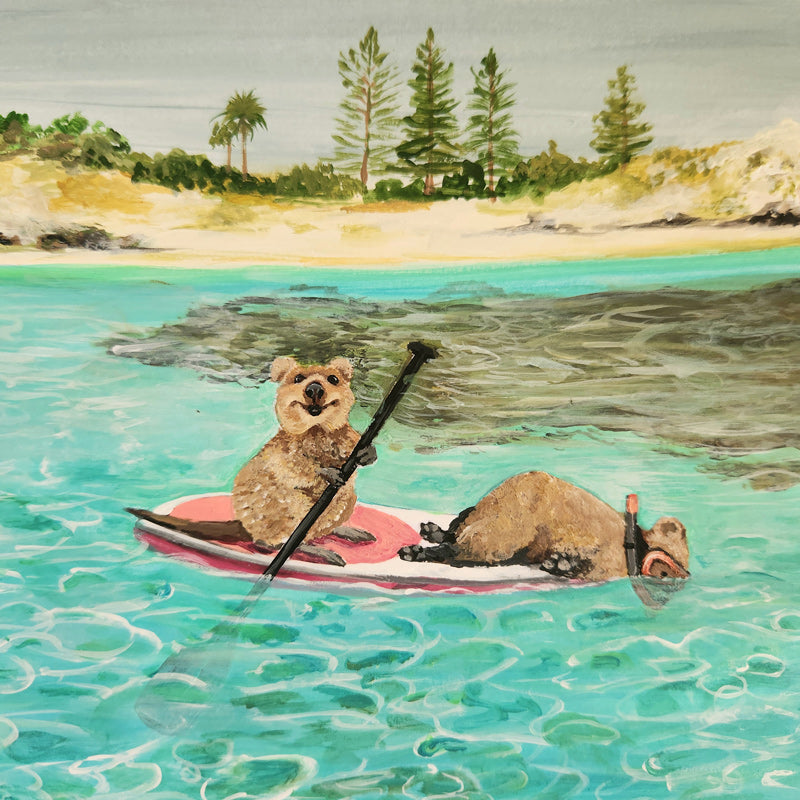 A cute ceramic coaster that comes gift packaged. Features a beautiful beach design with two quokkas paddleboarding.