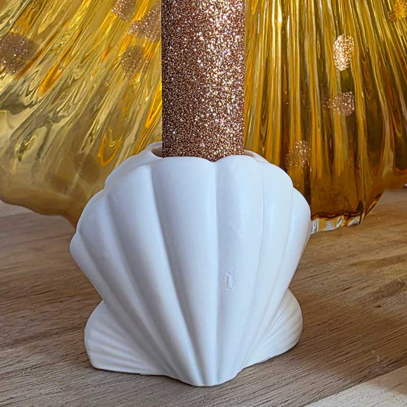 This beautiful candle holder has been crafted in a shell design that is perfect for holding a tapered candle.