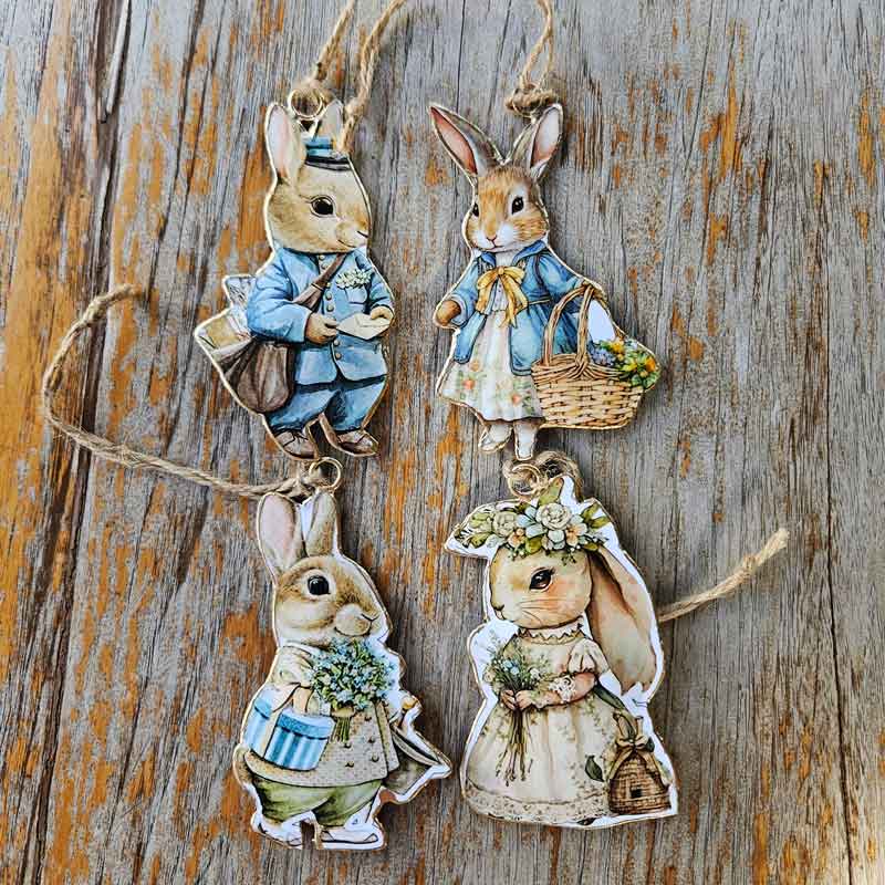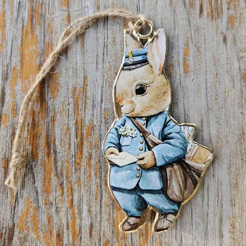 A lovely vintage style hanging rabbit ornament in a cute postman design.