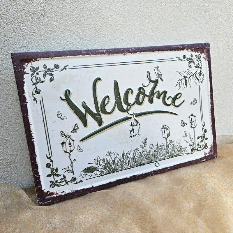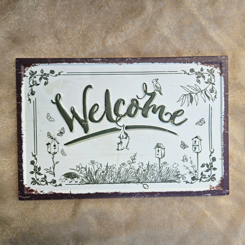 Welcome your guests with this charming hanging metal garden sign. Hang it in the garden, on a door or in a window.