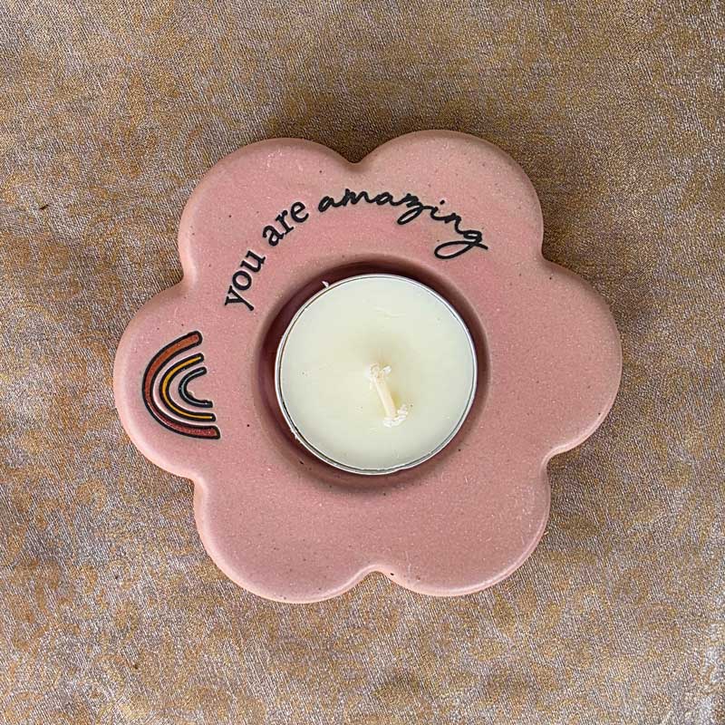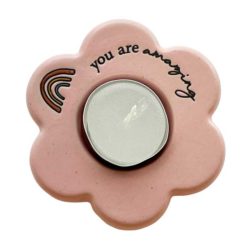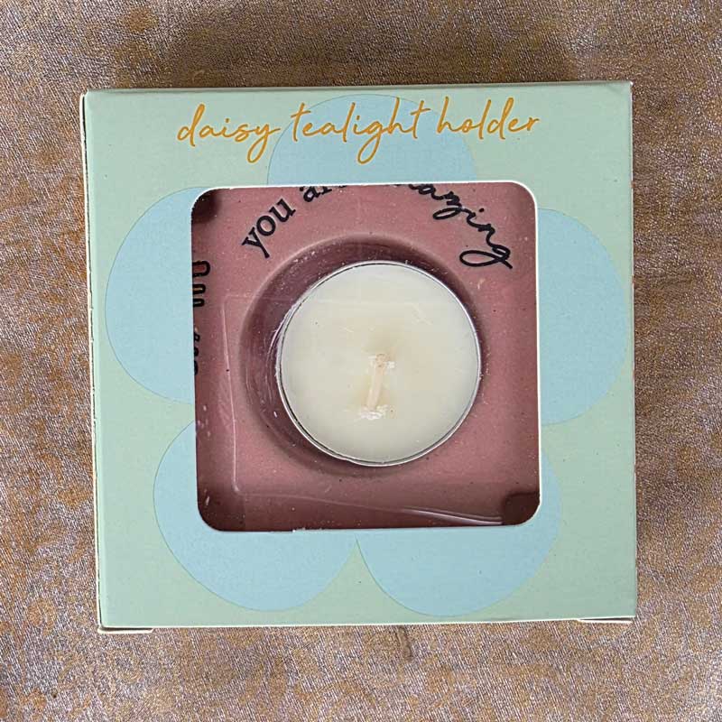 This pretty daisy shaped tea light candle holder is the perfect gift idea for a special friend, family member or loved one. Includes a tealight candle.