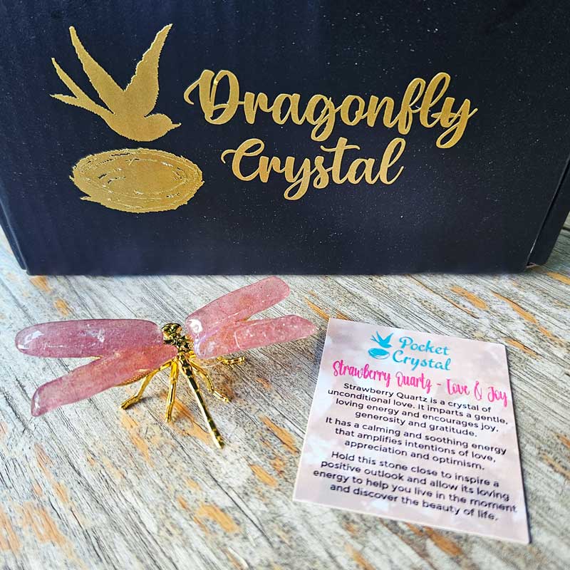 Dragonfly Crystal - Strawberry Quartz Love & Joy (Gold)