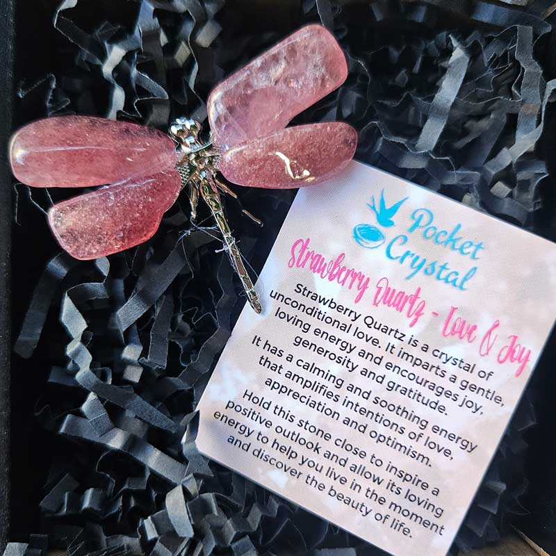 Dragonfly Crystal - Strawberry Quartz Love & Joy (Silver)