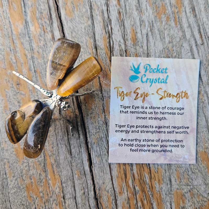Dragonfly Crystal - Tiger Eye Strength (Silver)