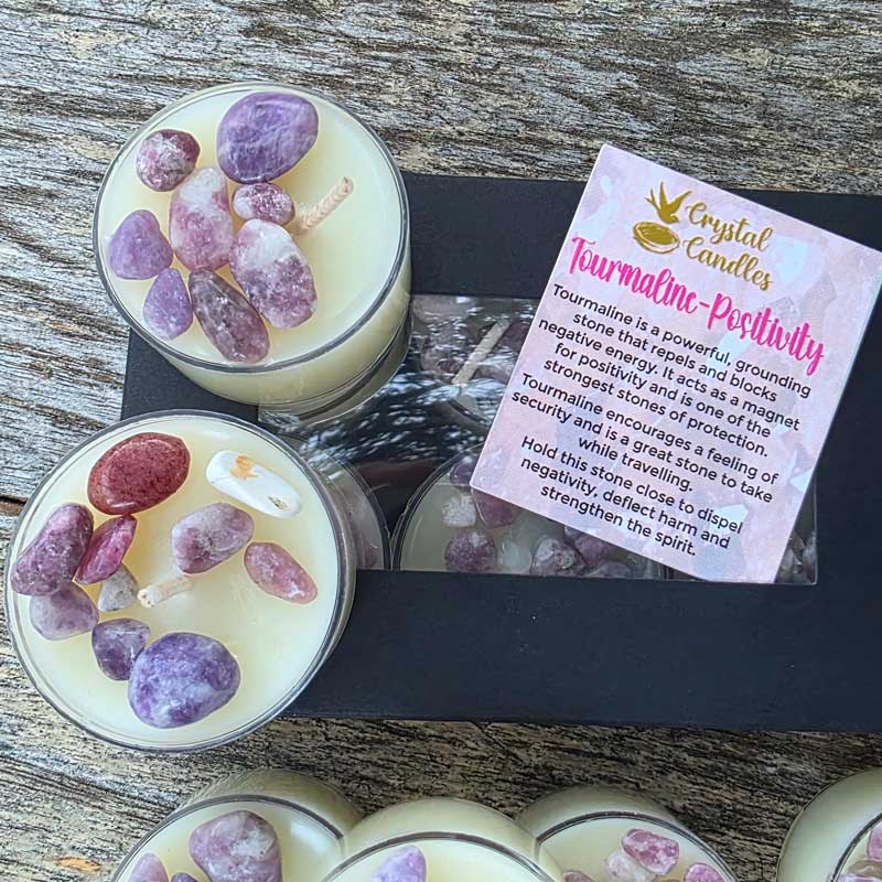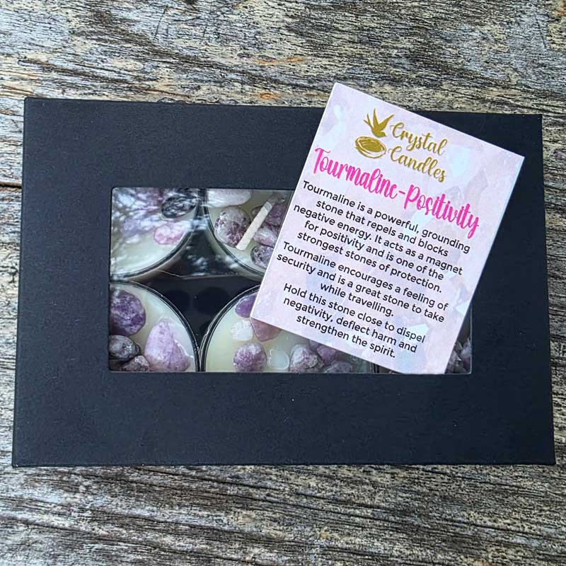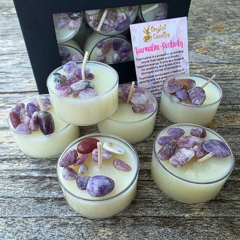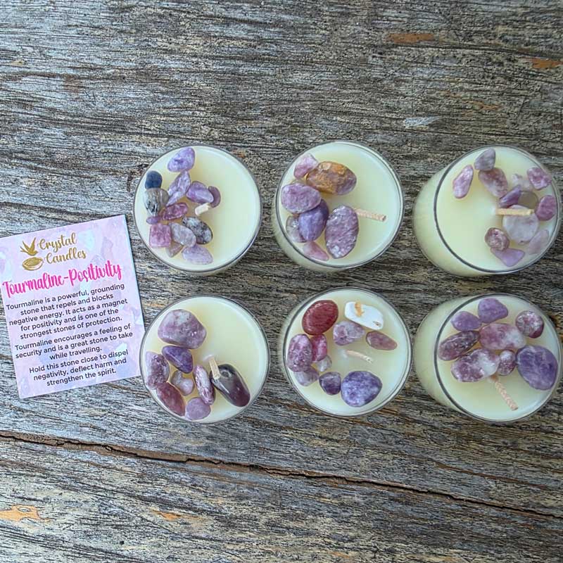 This Set of 6 Pink Tourmaline Crystal Soy Tealight Candles combine the perfect mix of stunning fragrance with healing crystals. Not only do these tealight candles smell amazing, but each tealight also contains tourmaline crystals, perfect for anyone that loves the healing power of crystals.