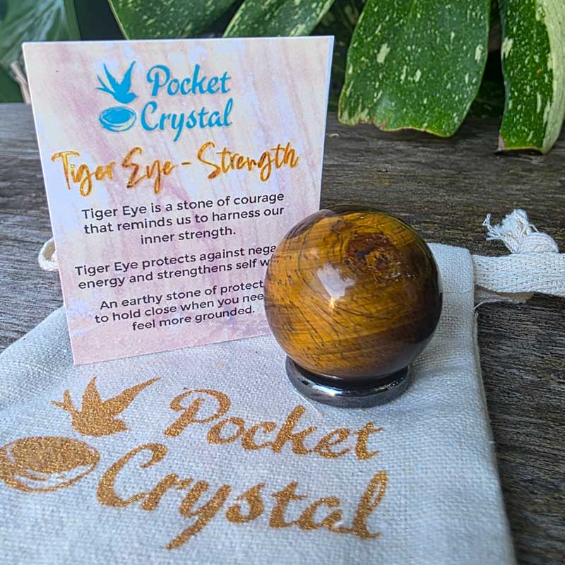 This beautiful Tiger Eye Pocket Crystal Sphere (with hematite stand) has been designed to be the ultimate pocket-sized meaningful gift for someone special.